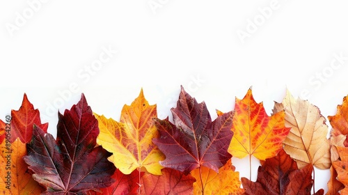 Fototapeta premium Isolated autumn leaf border in vivid fall colors.