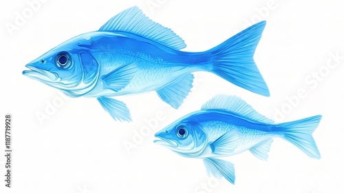 © Isolated studio, Fototapeta premium Isolated Baby Bluefish Illustrations in Vibrant Blue Colors