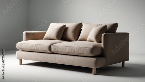 © DigitalDruid, Fototapeta premium Isolated backdrop with a light brown sofa