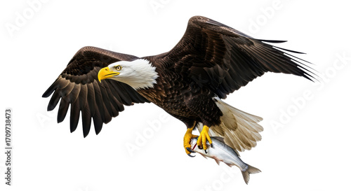 Naklejka premium Isolated Bald eagle catching fish a powerful predator majestic bird of prey...