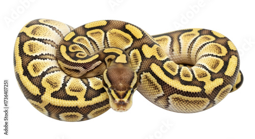 Obraz premium Isolated Ball Python posing with yellow pattern on skin against neutral backdrop, snake photo