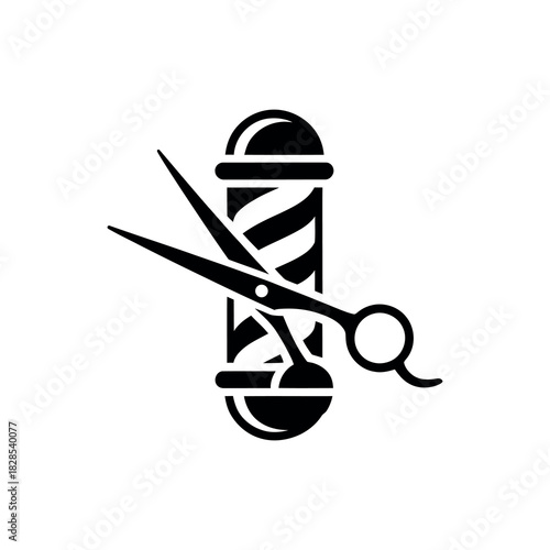 © Iconic Tarek, Fototapeta premium Isolated Barber Pole with Scissors Silhouette on Transparent Background Design