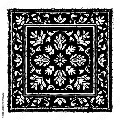 Obraz premium Isolated Batik Filled Rectangle black white on plain background