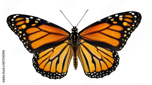 © Emil, Fototapeta premium Isolated beautiful Monarch butterfly with fully open wings, a colorful insect for design use