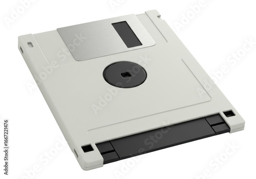© Lily, Fototapeta premium Isolated Beige Floppy Disk, Retro Computer Storage Medium
