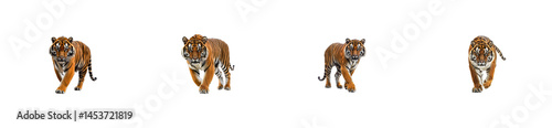 © Maestro, Fototapeta premium Isolated Bengal Tigers Walking Forward, Wild Feline Animal Poses. cut out transparent