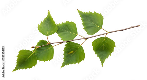© shahpng, Fototapeta premium Isolated Birch Branch with Green Leaves on Black Background Perfect for Design Elements and Nature Illustrations