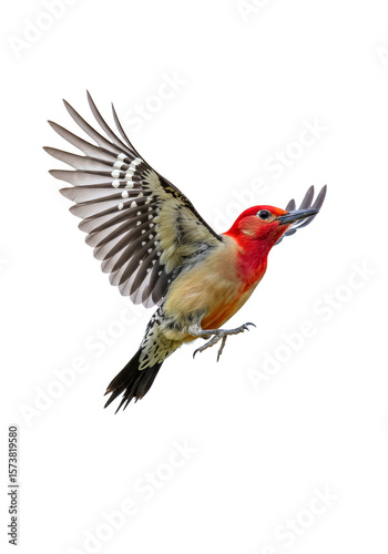 © Abram, Obraz premium Isolated Bird Flying with Open Wings Red Feathers on Transparent Background