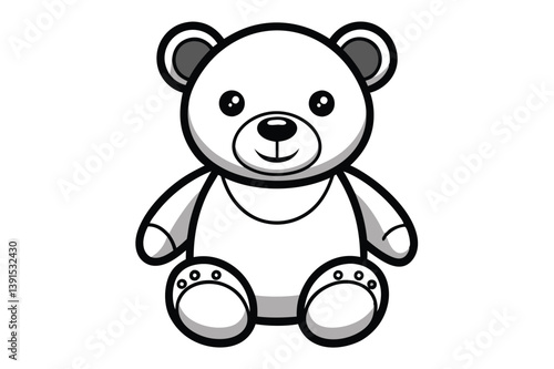 Fototapeta premium Isolated Black and White Cartoon Teddy Bear Sitting with Smiling Face on White