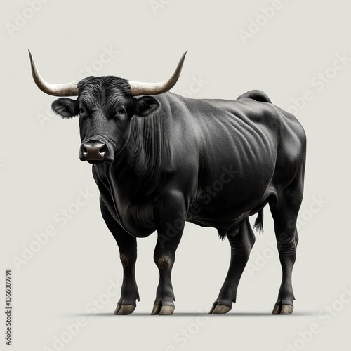© Tongpoon, Naklejka premium Isolated black bull showcases strength on a minimalistic background.