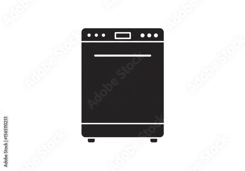 © Muhammad, Fototapeta premium Isolated black dishwasher appliance with control panel and small feet on a white background