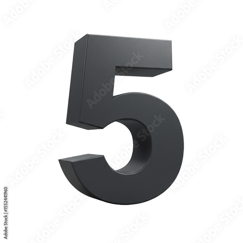 © Juan, Fototapeta premium Isolated Black Number Five a 3D Rendered Numerical Digit on Transparent