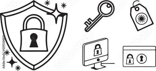 Obraz premium Isolated black security line and glyph solid icon Vector, black security line...