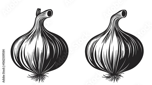 © Naseer, Obraz premium Isolated black silhouette logo of onion and garlic.