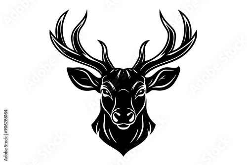 © Trendy CraftSVG , Naklejka premium isolated black silhouette of a deer head collection, Set of deer silhouette vector. Deer Silhouette, Deer Head