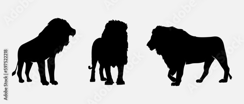 © tabon, Naklejka premium isolated black silhouette of a lion , vector collection
