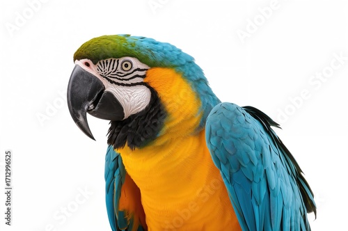 Obraz premium Isolated blue and gold macaw with clipping path on a white backdrop