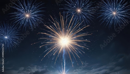 Naklejka premium Isolated blue fireworks burst against a starlit night sky , dark, sparkler