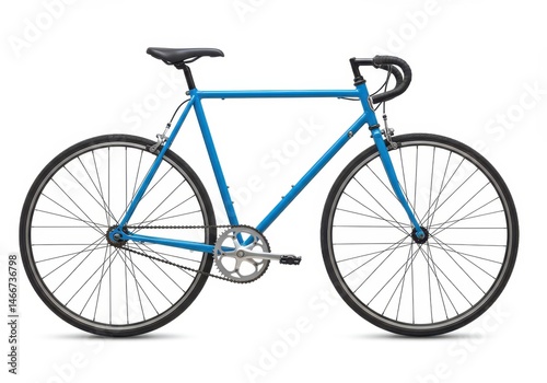 Obraz premium Isolated blue fixed gear bicycle with black seat and tires on white background