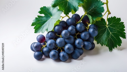 © DigitalDruid, Fototapeta premium Isolated blue grape fruit with green leaves on a white background