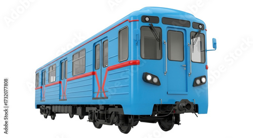 Obraz premium Isolated blue subway train car, urban railway transport for passengers and...