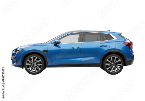 Obraz premium Isolated blue SUV car side view for advertising, transportation and mobility design art