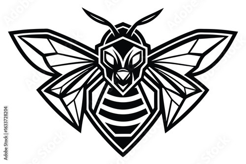© Sonda, Fototapeta premium Isolated bold black honeybee shows geometric design elements with intricate stripes and wings