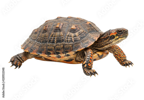 © Ukilats, Naklejka premium Isolated Box Turtle Walking with Colorful Shell on Black Background
