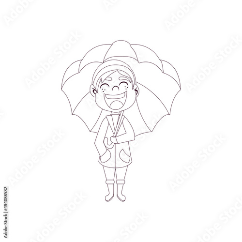 Obraz premium Isolated boy umbrella draw kids rain winter weather vector illustarion