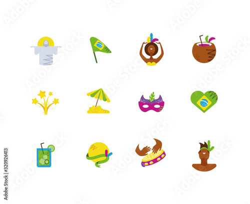 © djvstock, Fototapeta premium Isolated brazilian carnival icon set vector design