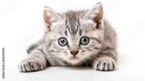 Obraz premium Isolated British Shorthair silver tabby kitten on white background