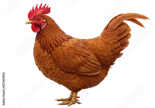 © Lucas, Fototapeta premium Isolated Brown Hen Facing Forward with Detailed Feathers