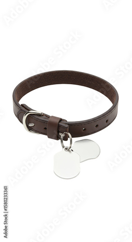 Obraz premium Isolated Brown Leather Pet Collar with Tags for Animal Style