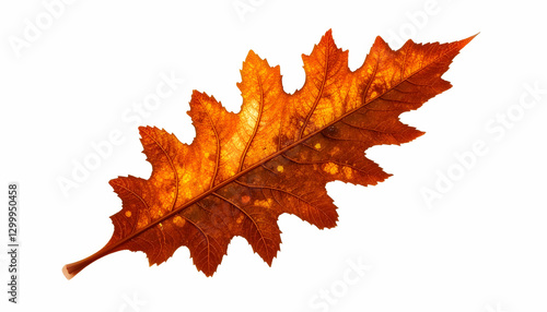 Fototapeta premium Isolated Brown Oak Leaf with Intricate Veins Detail Against White