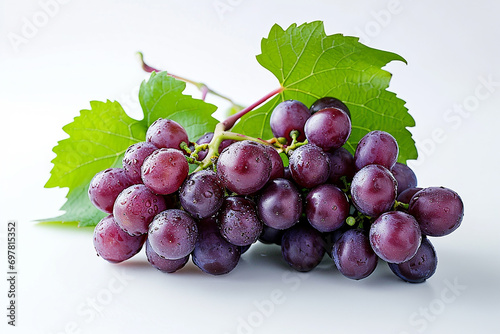 Fototapeta premium Isolated Bunch of Purple-Red Grapes on White - Fresh and Sumptuous Fruit Photography Created with Generative AI Tools