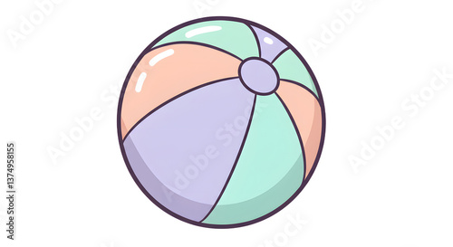 Fototapeta premium Isolated Cartoon Beach Ball with Pastel Colors on White Background