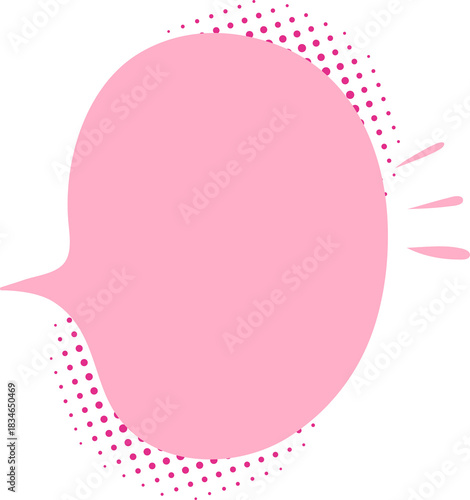 © Kristina Yu, Obraz premium Isolated cartoon empty text box for banner design, pink chat communication balloon hand drawn doodle, playful pop art sticker with halftone dots