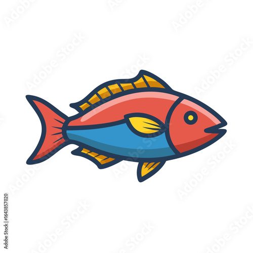 © Wahidur, Fototapeta premium Isolated cartoon fish with geometric shapes against black backdrop