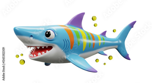 Naklejka premium Isolated Cartoon Shark with Stripes and Bubbles