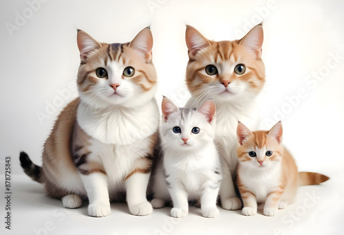 Fototapeta premium Isolated cat family on white background