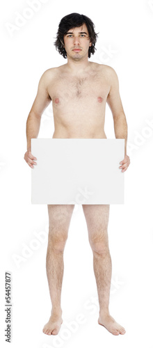 © eldadcarin, Fototapeta premium Isolated Caucasian Adult Nude Man Holding Sign