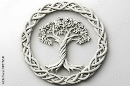 © Tithi, Fototapeta premium Isolated Celtic Tree Design with Intricate Floral Details