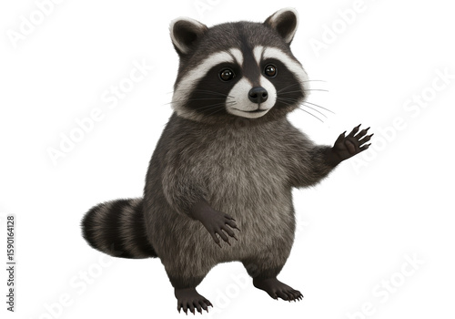 © Vincent, Obraz premium Isolated Cheerful Cartoon Raccoon Waving Hand