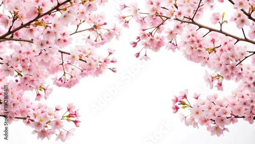 © Atittaya, Obraz premium Isolated cherry blossom branches with clipping path on tilted angle