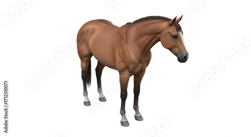 © Marigold, Fototapeta premium Isolated chestnut horse standing, a beautiful equine animal for equestrian activities