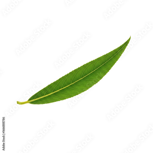 Fototapeta premium Isolated close up of a single green willow leaf with visible veins on a...