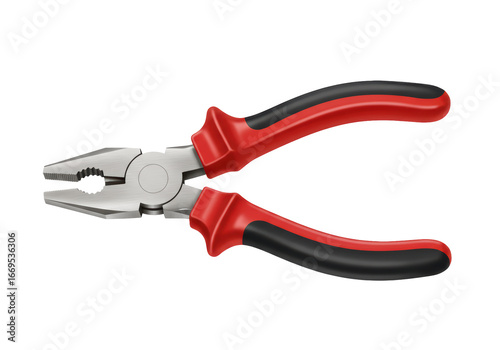 © Cian, Obraz premium Isolated close-up studio shot featuring realistic combination pliers with red and black handles, showcasing the tool's ergonomic design and versatile functionality against a neutral background