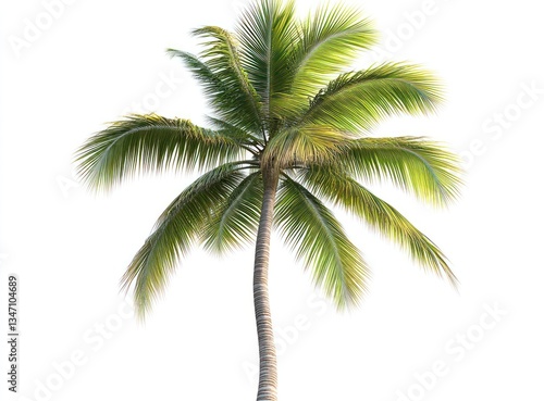 © El Media, Fototapeta premium Isolated Coconut Palm Tree with Green Fronds on White Background