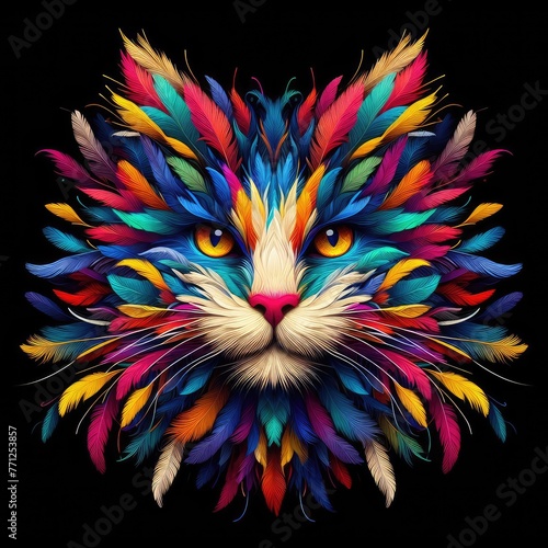 © faical, Obraz premium Isolated Colorful Cat on a Clear PNG Canvas, Generative AI
