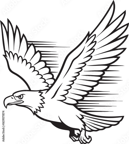 © MDKHURSHED, Obraz premium isolated create need Vector Cartoon Bald Eagle With Speeded Wings Line Art on white background